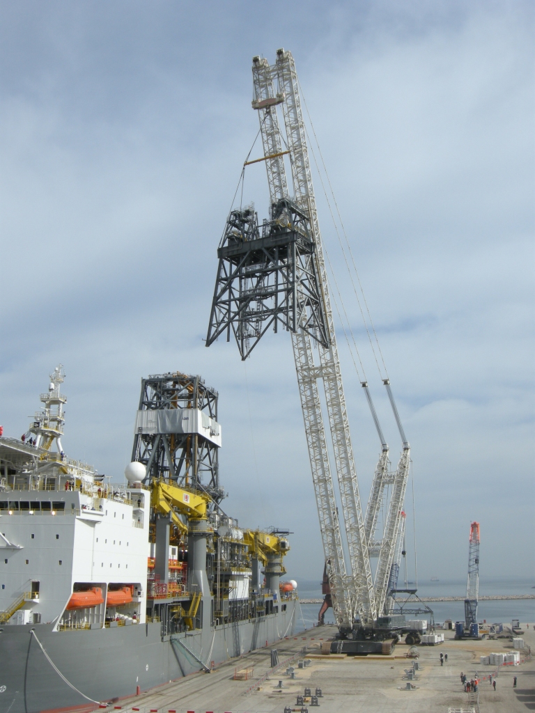 Lifting of a 548te steel structure at 46mtr radius with 138mtr boom using a 3,200 te capacity Demag CC 8800-1 with a crawler twin attachment.